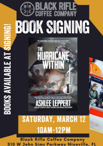Come up and see me Saturday March 12th from 10-12pm. You can purchase an autographed copy of my memoir “The Hurricane Within”, grab your favorite coffee beverage, and scope out the newly opened BRCC! Help support your local veterans! See you Saturday!